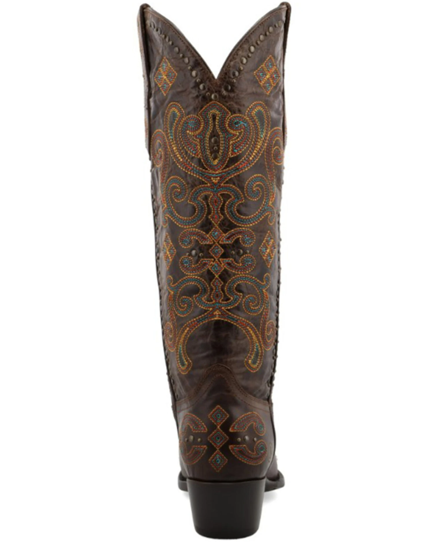 - Scroll and geometrical embroidery with detailed studding on vamp and shaft