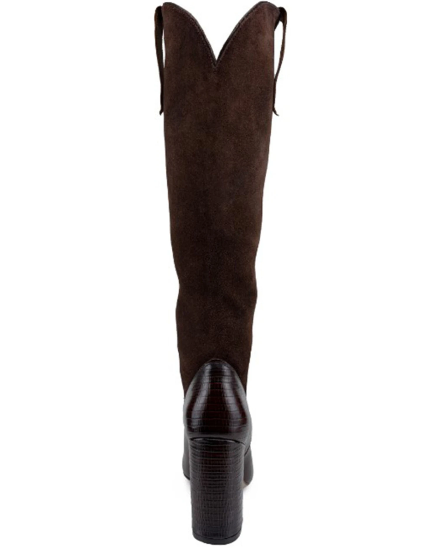 - Lizard embossed leather on vamp, heel and pull tabs with suede shaft