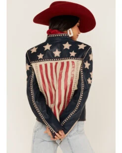 Double D Ranch Women’s Americana Star Spangled Freedom Leather Moto Jacket