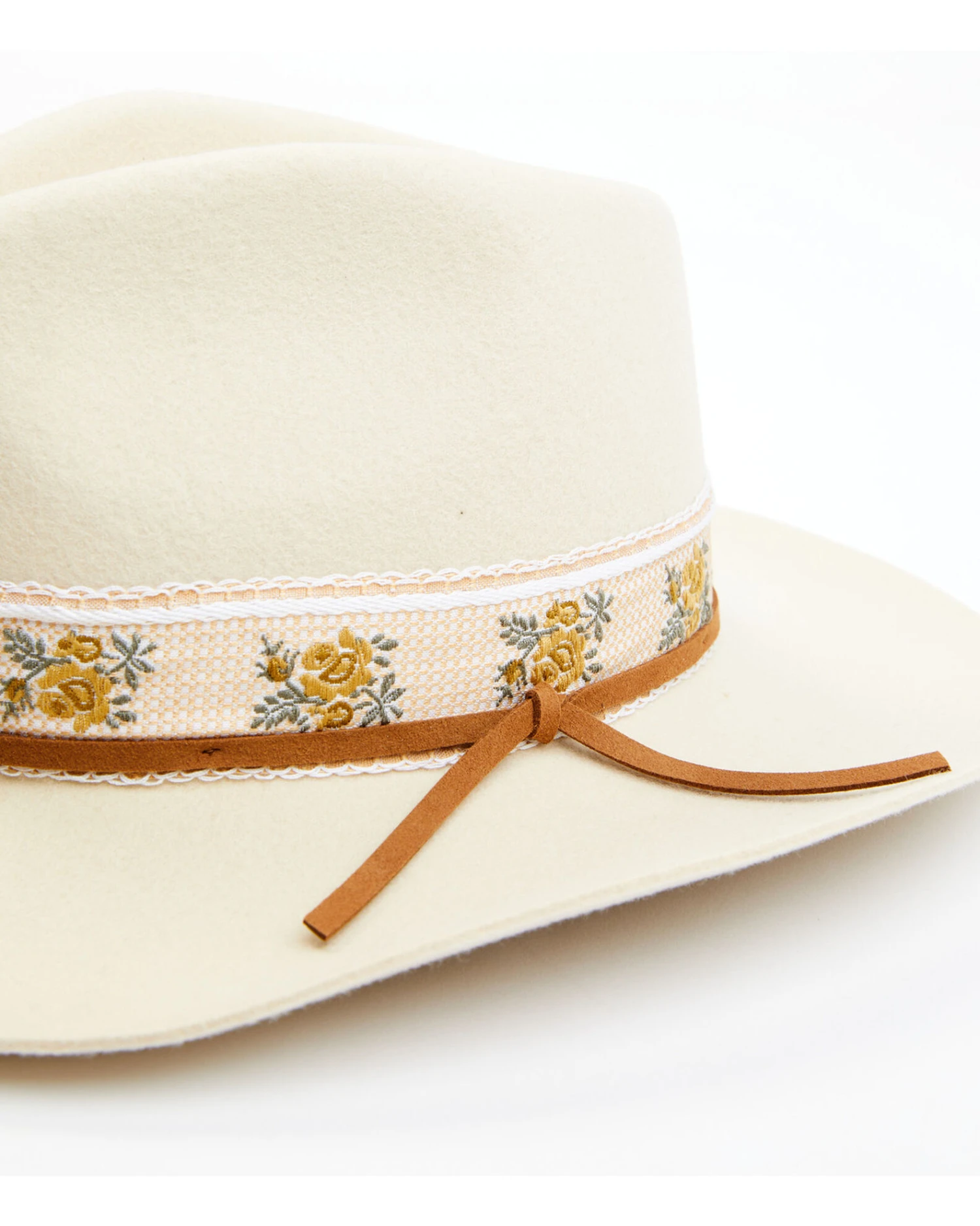 - Jacquard ribbon outside band with floral motif