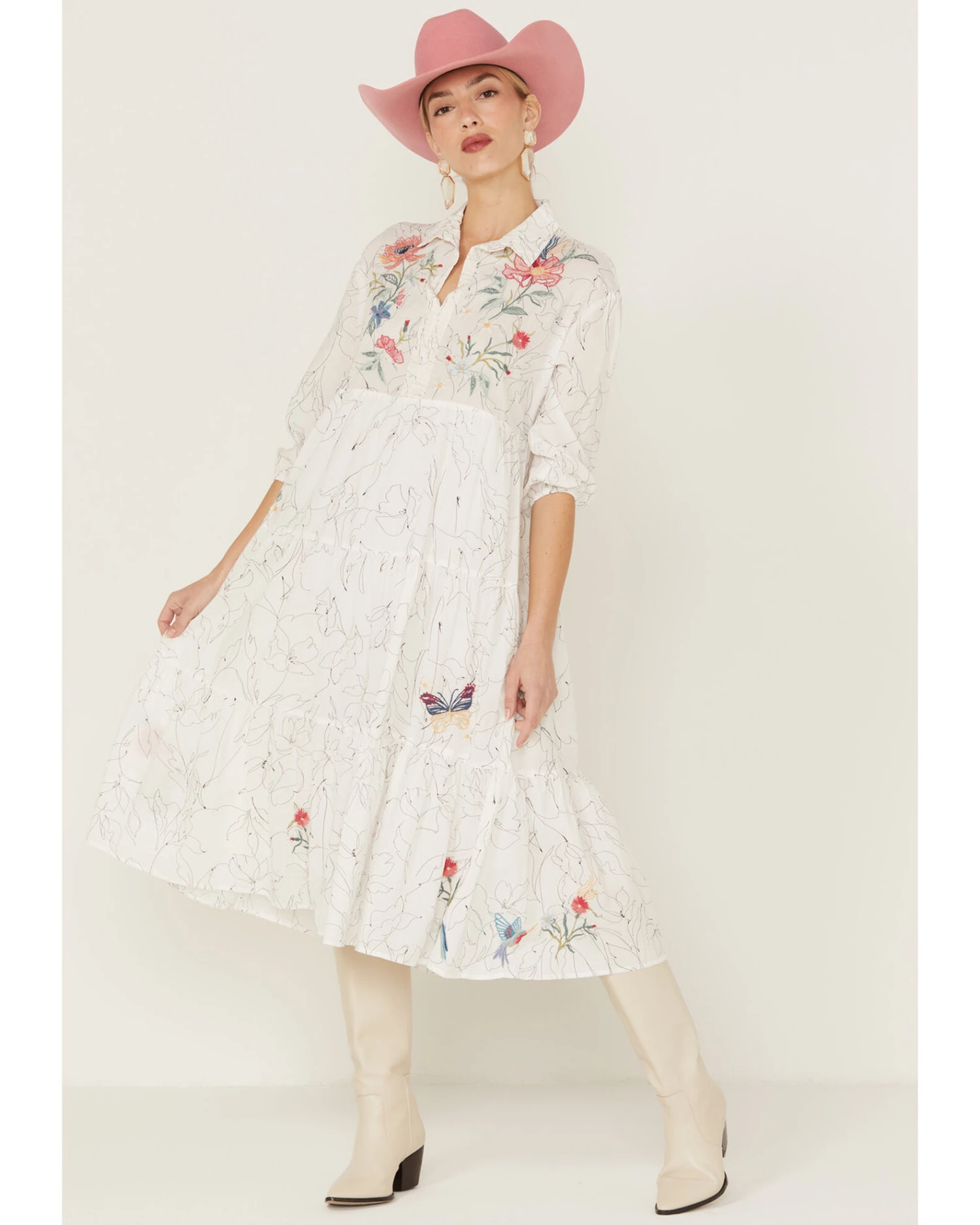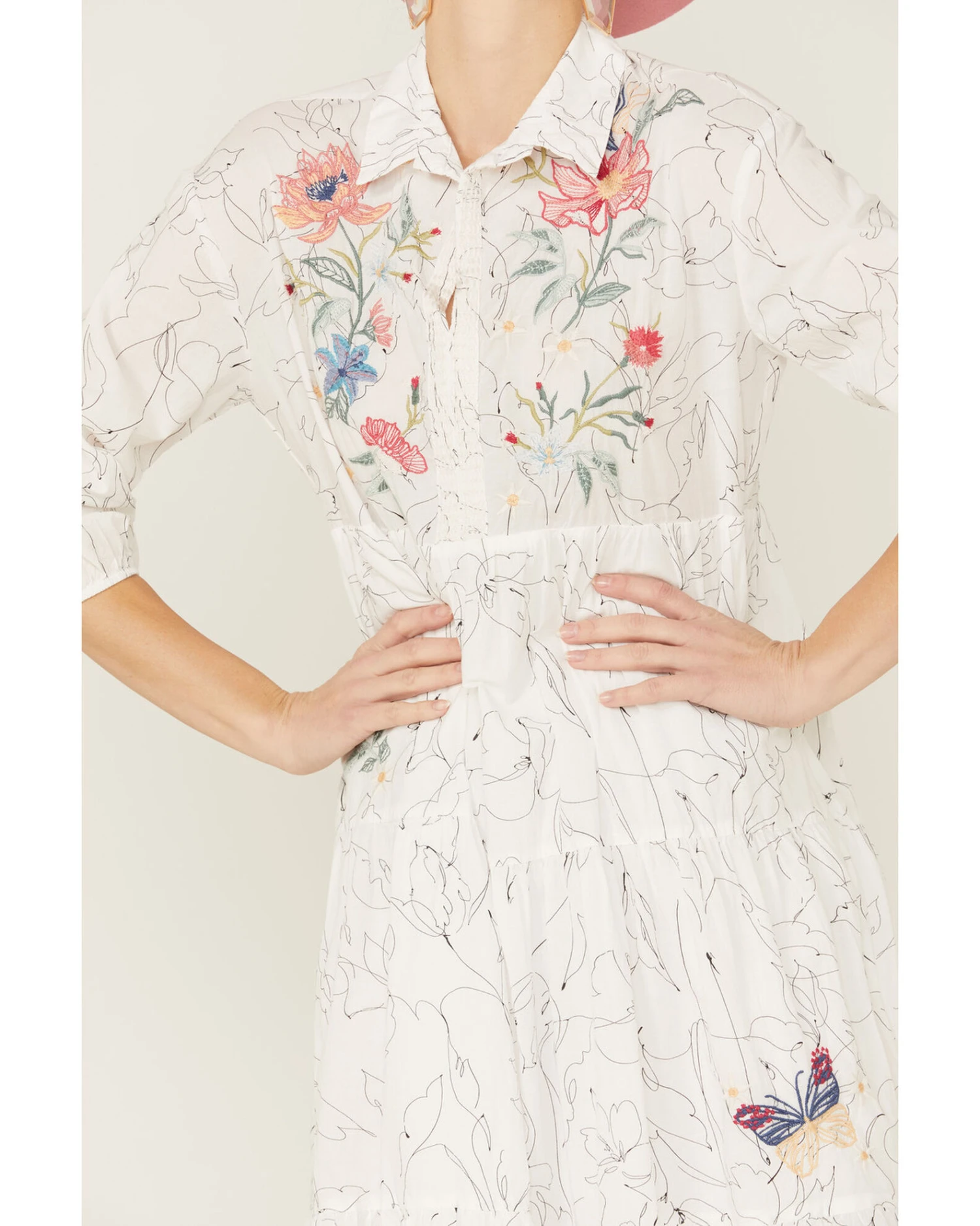 - Print and embroidered flowers