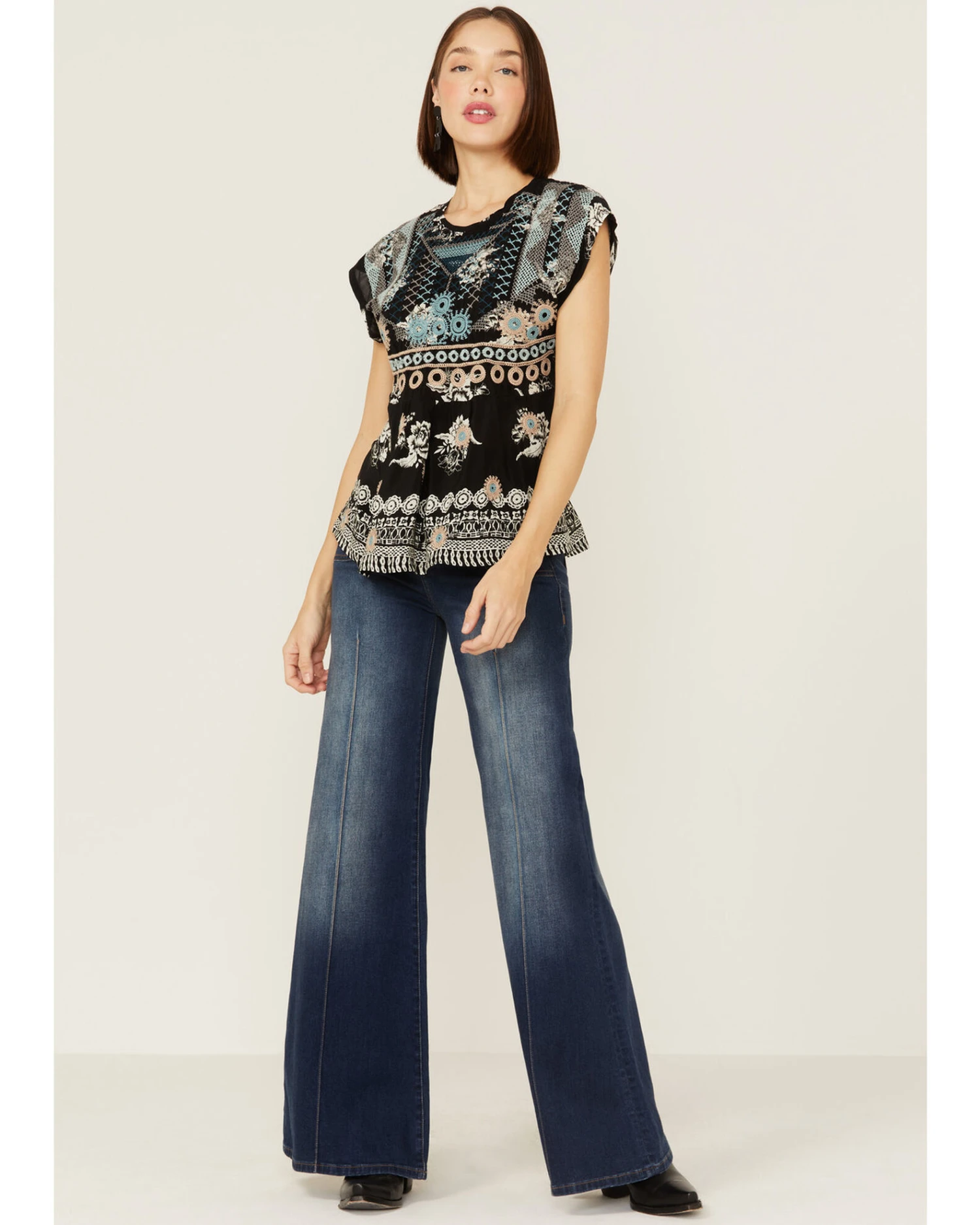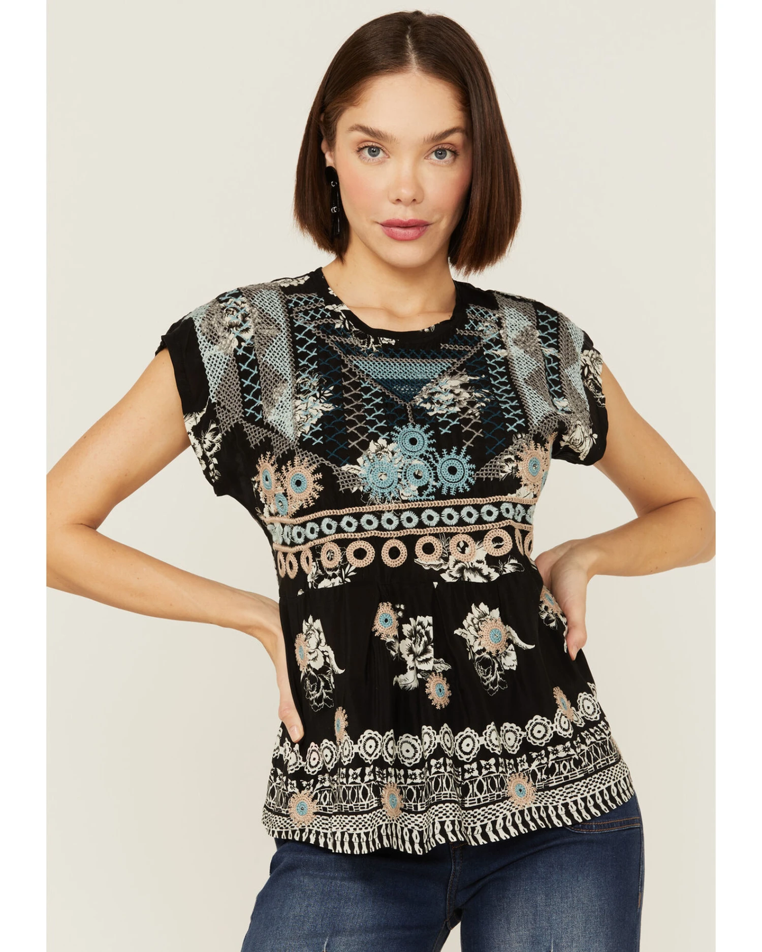 - Top embroidered multicolored patterns