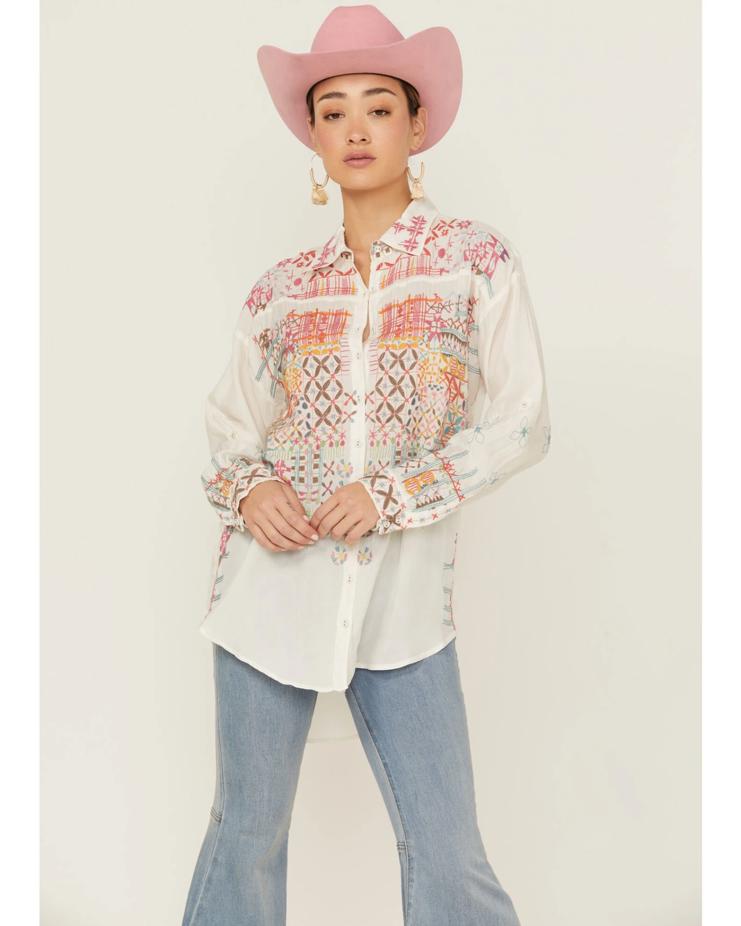 Johnny Was Women’s Ryan Embroidered Button Down Long Sleeve Shirt