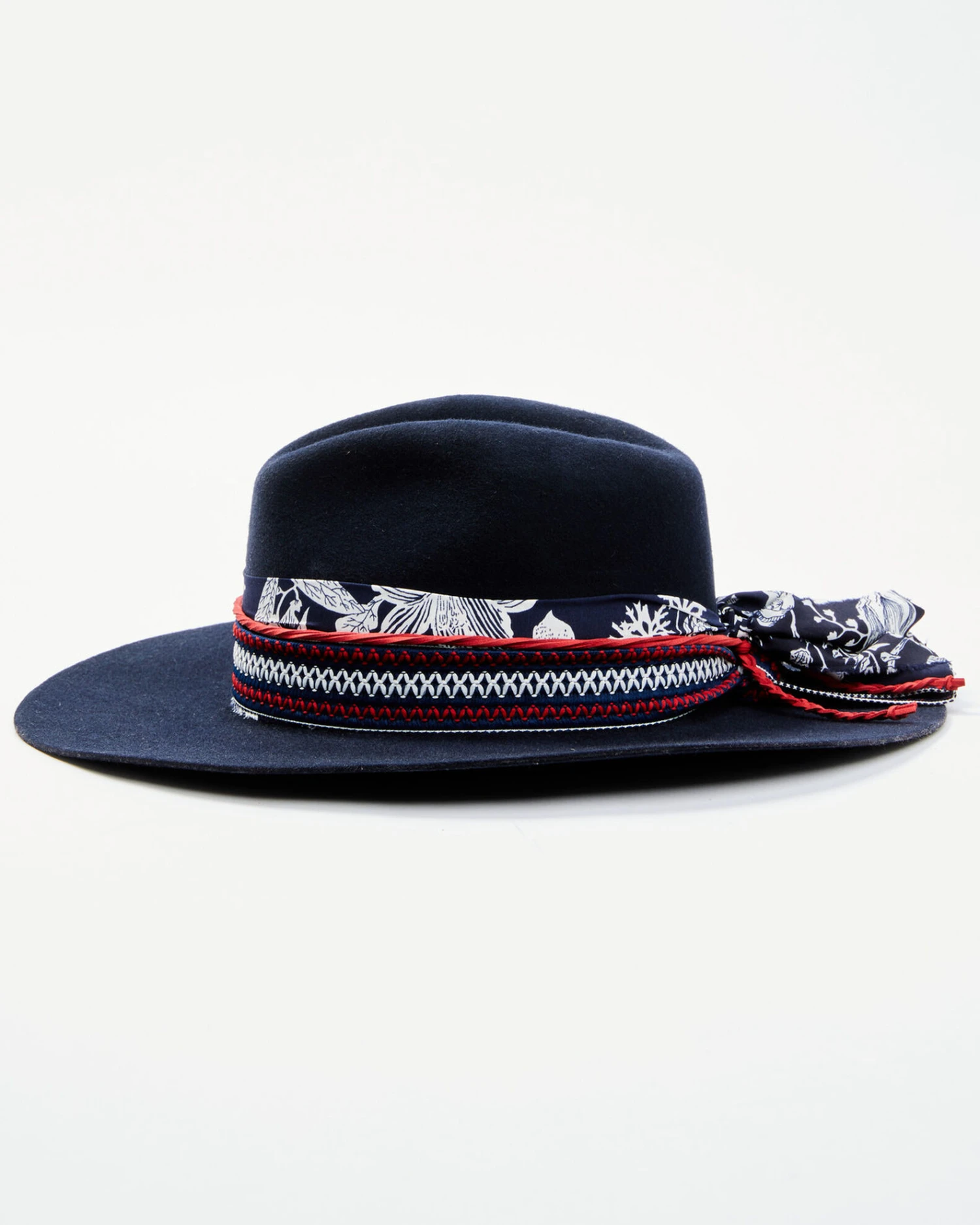 Marco Delli Navy Indiana Thick Patterned Band Wool Felt Fashion Hat