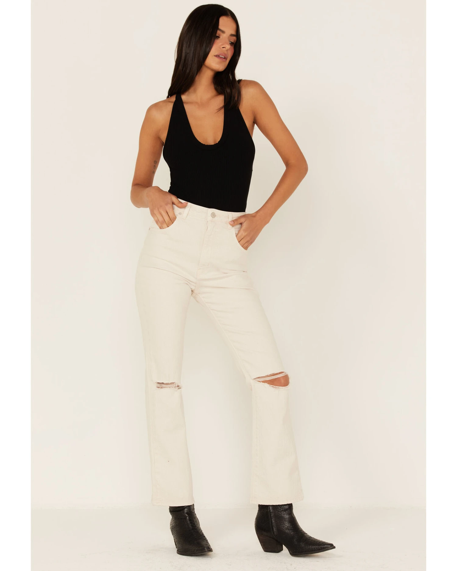 Rolla’s Women’s High Rise Distressed Cropped Dusters Bootcut Jeans