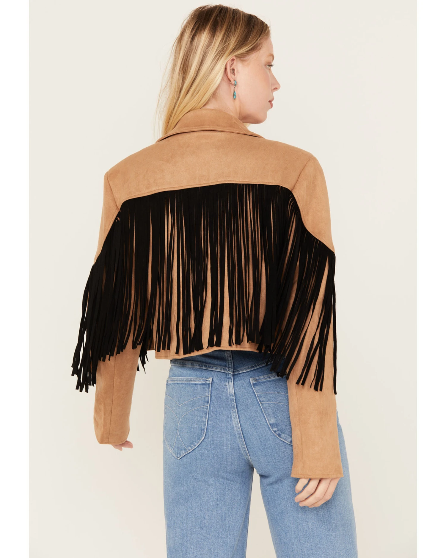 Saints & Hearts Women’s Faux Suede Cropped Fringe Jacket
