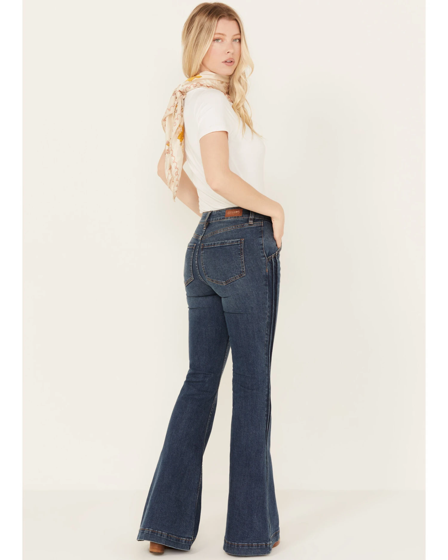 Shyanne Women’s Gold Barrel Dark Wash High Rise Pintuck Flare Jeans