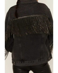 The Billy Jacket By DanielXDiamond: Women’s White Denim Jacket With Silver Fringe