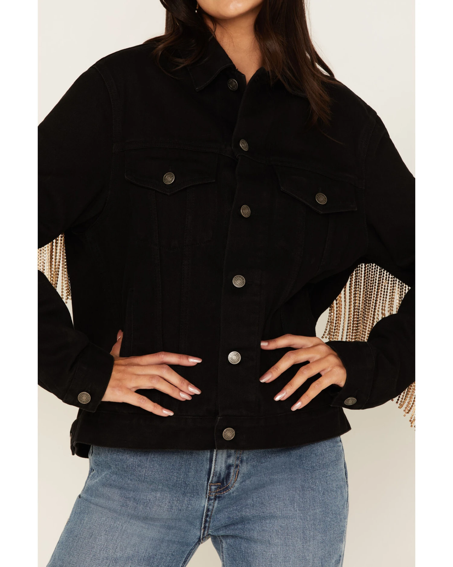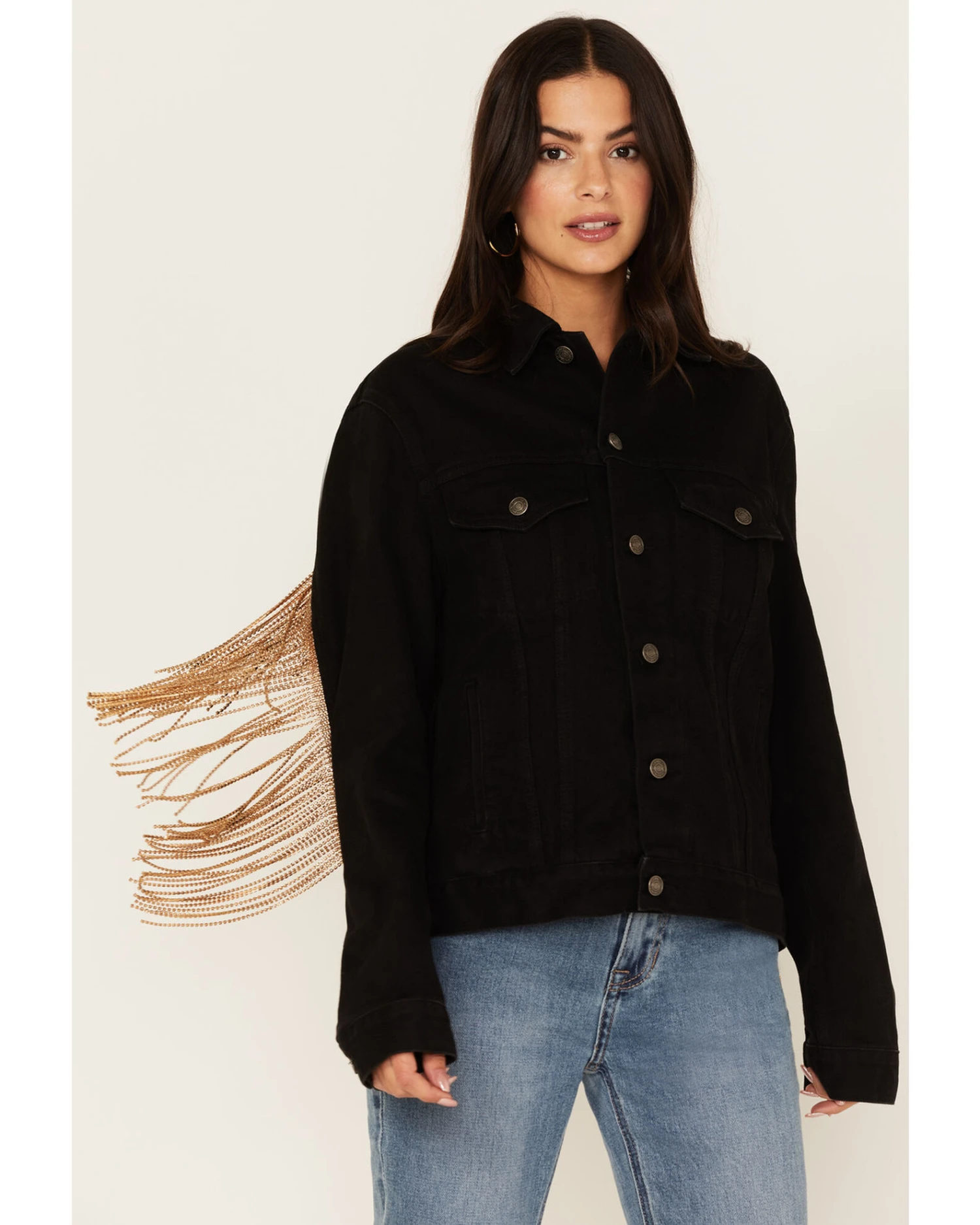 The Harley Jacket By DanielXDiamond: Women’s Black Denim Jacket With Gold Fringe