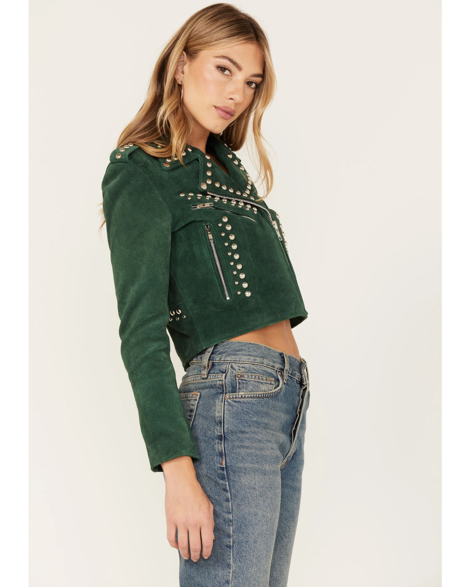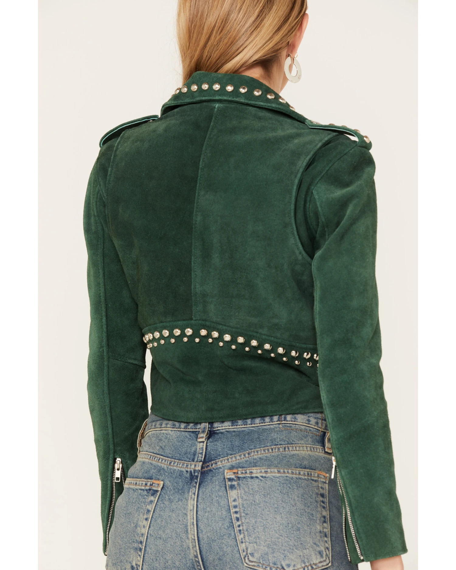 Understated Leather Women’s Runway Studded Suede Moto Jacket